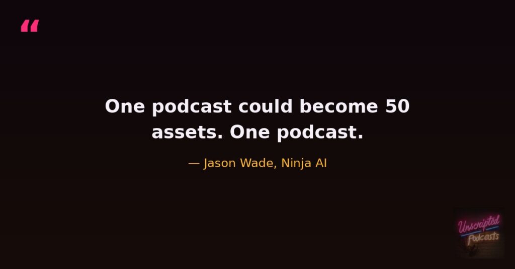 Jason: You could do four podcasts a year. Take the audio, the text, the transcription — that’s data. Off one conversation, I can do a blog post. Off one podcast, you could do a hundred shorts, a full blog, everything. If they did it four times a year, spent $1,000 to $2,000 total, you’d have marketing material for a whole year.